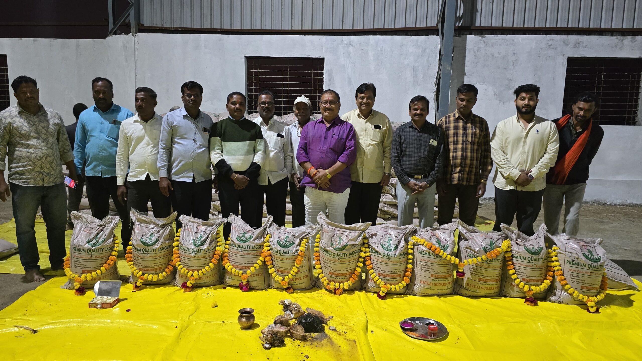 हातलाई शुगरच्या गूळ पावडरच्या पहिल्या आकरा पोत्याचे पूजन
