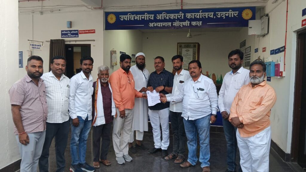 छावा मराठा संघटनेच्या वतीने मा. उपजिल्हाधिकारी साहेब उदगीर. यांना संघटनेच्या वतीने निवेदन देण्यात आले यात संघटनेची खालील प्रमाणे मागणी मराठ्यांचे क्रांतीसुर्य अण्णासाहेब जावळे पाटील यांच्या नावे स्वतंत्र मराठवाडा आर्थिक विकास महामंडळ त्वरित राज्य शासनाने स्थापन करण्यात यावे., उदगीर येथे छत्रपती शाहू महाराज यांचा पूर्णाकृती पुतळा उभारण्यात यावा, व तसेच अहमदपूर वाढवणा पाटील मार्गे आयुर्वेद रित्या विना नंबर हायवा टिप्पर द्वारे आयुर्वेद वाळू वाहतूक करून शासनाचा महसूल बुडवला जातो या वाळू माफियावर त्वरित निर्बंध लादून योग्य ती कारवाई करण्यात यावी. व वाढवणा बु. हळी परिसरातील आयुर्वेद रित्या चालत असलेले मटका जुगार तिरट पोलीस प्रशासनाने तात्काळ बंद करून योग्य ती जुगार चालकावर कारवाई करावी, उदगीर नगरपरिषद कार्यालयातील तिसऱ्या मजल्यावर लोखंडी कंपाउंड वॉल असून ते अत्यंत धोकादायक असून लहान मुले व्रत नागरिक व महिलांसाठी खूपच धोकादायक असल्यामुळे एखाद्याचा तोल जाऊन जीवित हानी होण्याची दाट शक्यता आहे त्यामुळे सदर लोखंडी कंपाउंड वॉल पूर्णता तारेची जाळी बसविण्यात यावी, व तसेच सध्या परिस्थितीत उदगीर शहरात होत असलेल्या आशिष वाहतूक होत असून चौकात चौकामध्ये उदगीर शहरात ट्राफिक जाम होत आहे यावर शासनाने निर्बंध लादण्यात यावे व वाहतूक सुरळीत करण्यात यावे यासाठी छावा मराठा संघटनेचे प्रदेशाध्यक्ष प्रा. राजेश चव्हाण यांच्या उपस्थितीत ग्रामीण जिल्हाध्यक्ष विशाल देवणे जिल्हाध्यक्ष उत्तम बिरादार, राहुल पाटील, गणेश मुंडकर, एस एस न्यूज चैनल चे संपादक हमीद भैया शेख, मनोहर वाघमारे, बाबासाहेब सूर्यवंशी, सुनील पाटील, आसिफ पठाण, सिकंदर शेख, बापूसाहेब कांबळे, टी एम पंढरपूरे, अजय बिरादार यांच्या उपस्थितीत माननीय उपजिल्हाधिकारी सुशांत शिंदे साहेब यांना निवेदन देऊन तात्काळ मागण्या मान्य कराव्यात अन्यथा दिनांक 30 12 2025 रोजी उपजिल्हाधिकारी कार्यालय समोर छावा मराठा संघटनेच्या वतीने धरणे आंदोलन करण्यात येईल असा इशारा देण्यात आला..