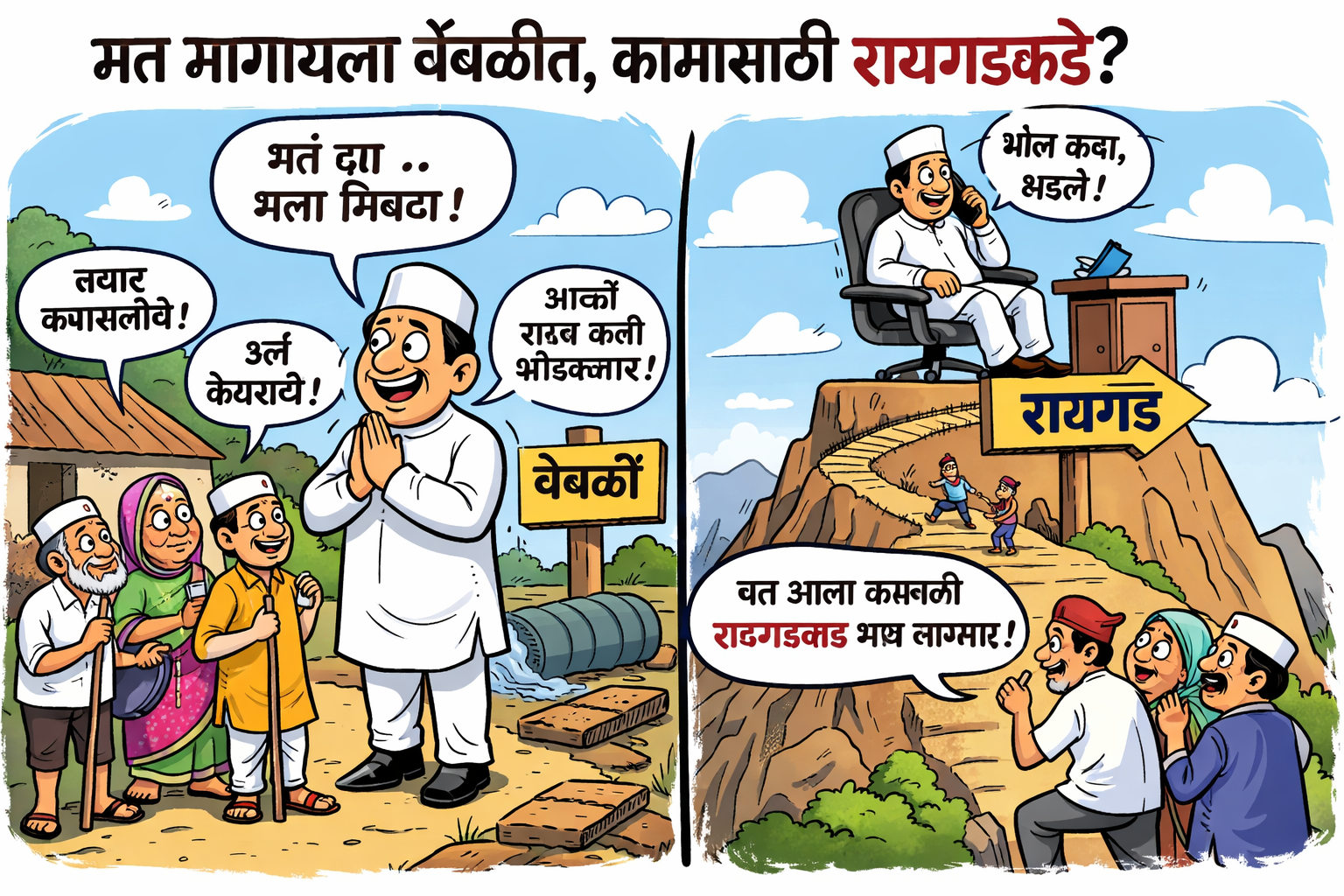 स्थानिक नागरिकांचे म्हणणे आहे की, “अर्ज द्यायचा झाला, तक्रार मांडायची असेल किंवा तातडीची अडचण निर्माण झाली, तर त्यासाठी रायगडला जावे लागेल का?” या प्रश्नामुळे मतदार अधिक सजगपणे विचार करून निर्णय घेण्याच्या भूमिकेत दिसत आहेत.