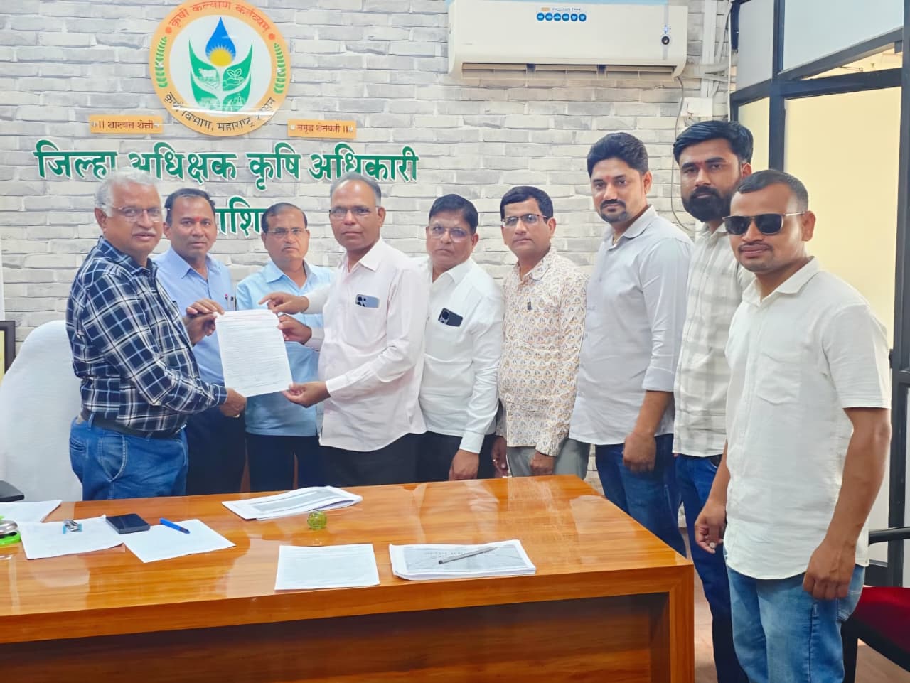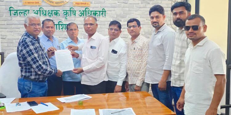 धाराशिव जिल्हा संघटना अध्यक्ष बदोले ह्यांचा मार्गदर्शनाखाली जिल्हा कृषी अधिकारी श्री मोरे यांना निवेदन जिल्हा संघटना सचिव उदय तिर्थकर,कोषाध्यक्ष चंद्रसेन पिसाळ, तालुकाध्यक्ष संग्राम शिंदे, सचिव आकाश नाईकवाडी, उपाध्यक्ष ज्ञानेश्वर सूर्यवंशी, मोदानी आदी उपस्थित होते