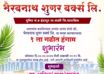 Read moreइंदापूर येथील 'भैरवनाथ शुगर'मध्ये उद्या मोळी पूजन; व्हाईस चेअरमन विक्रम सावंत यांच्या हस्ते होणार प्रारंभवाशी (प्रतिनिधी)- इंदापूर-वाशी कार्यक्षेत्रातील अग्रगण्य साखर...